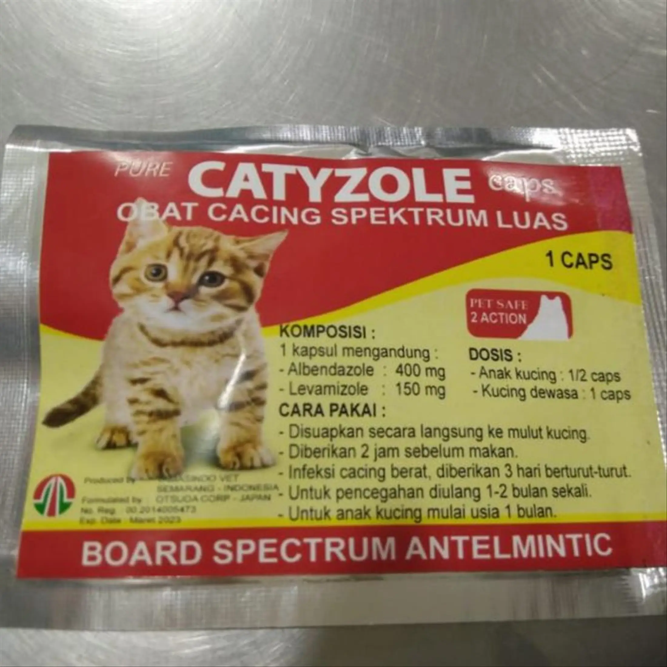 Cuman aku khawatir aj sama dia. Pemberian obat ini sebanyak 20mgkg berat kucing dan diberikan selama 3-5 hari berturut-turut. Setelah itu setiap 3 bulan atau sesuai saran dokter hewan.