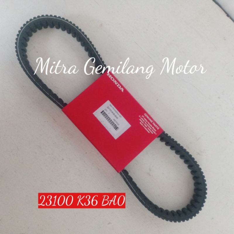 V-belt adalah salah satu komponen penting yang berfungsi menjadi penyalur tenaga mesin dari pulley depan ke pulley belakang dan roda. Harga Per Cvt Pcx 150 Built UP Thailand Original Honda 23233-KWN-901. Assy Vanbelt K36 Vario 150 Vario 150 ESP Vario125 Honda 23100-K36-J01.